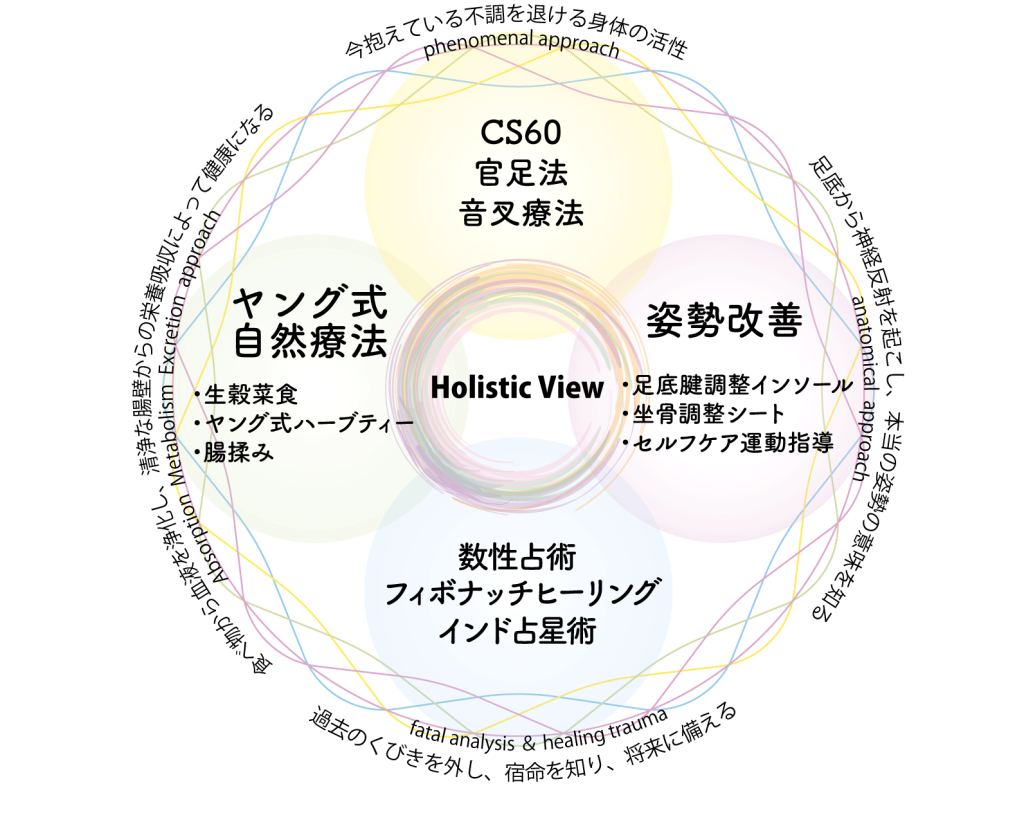 「Holistic View Rita」は、「宇宙、自然の法則に従って、全体的な繋がりの視点を持ち、利他心と共に歩み続けたい」という想いを込めて名付けました。20年近くに渡り「真の健康とは?」を常に問いかけながら、心と身体に携わる様々な学びと実践を続け、今ここに辿りついています。