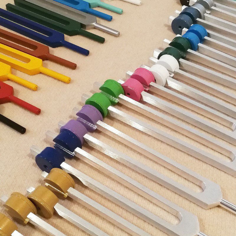 胃腸の働きが弱っている場合は、胃腸のツボに。頭痛があれば痛みを解放するツボなどに音叉を使います。