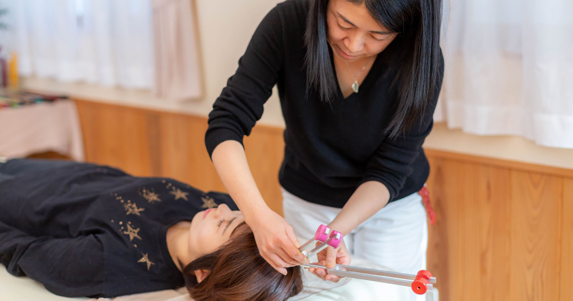 音叉療法は鍼を使わない鍼治療と同様の効果がありますので、これだけでも十分効果が期待でき、ひとつのセッションになります。
